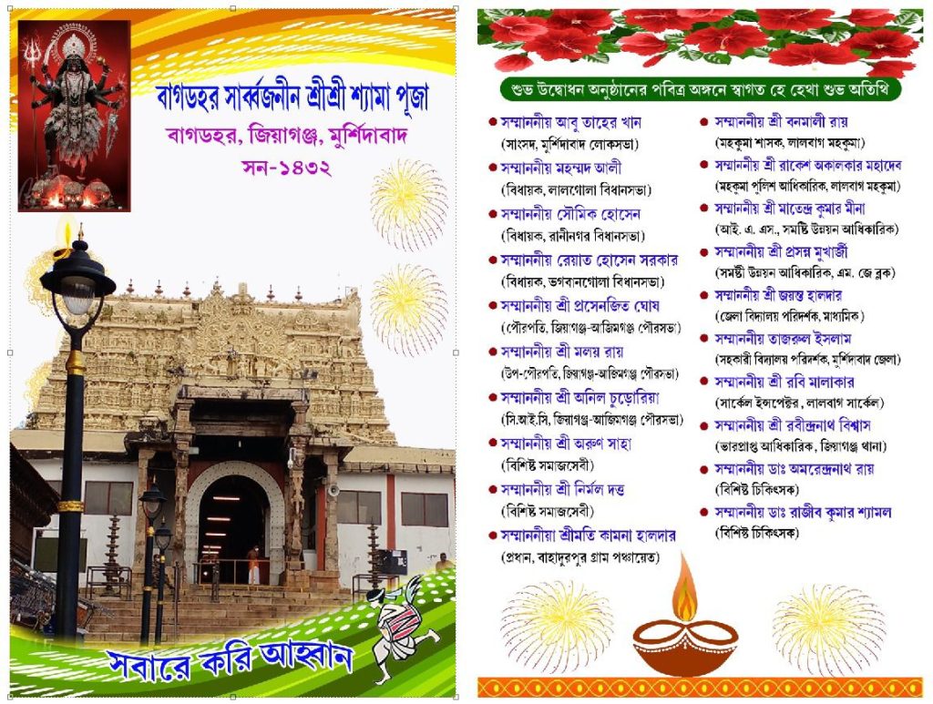 বাগডহর সার্বজনীন শ্রীশ্রী শ্যামা পূজা, সন ১৪৩২–এর এই আয়োজনে মেতে উঠেছে গোটা এলাকা। পূজা কমিটির পক্ষ থেকে সকলকে এই আনন্দ উৎসবে অংশ নেওয়ার আহ্বান জানানো হয়েছে।