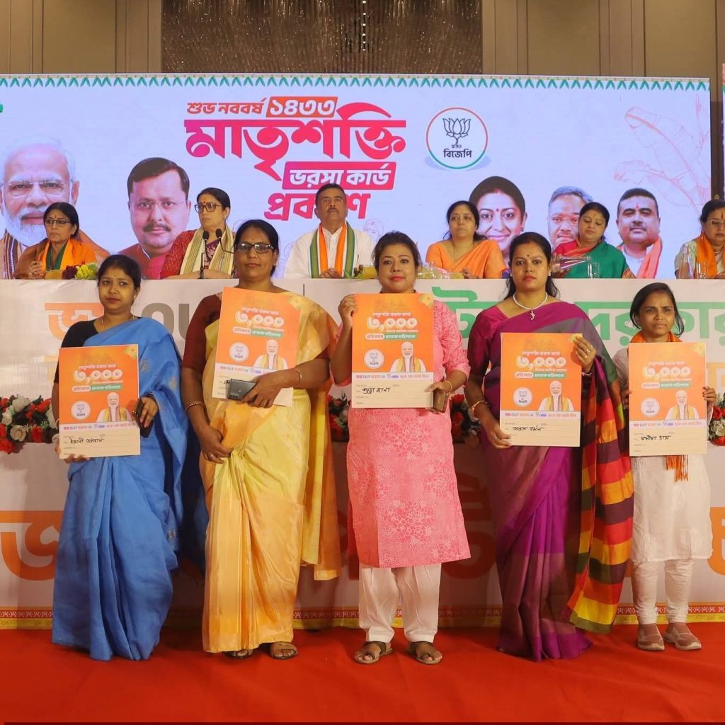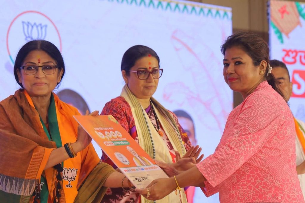 Spread the love রাজ্যের মহিলাদের স্বনির্ভর করে তোলার লক্ষ্য নিয়ে বিজেপি আজ ‘মাতৃশক্তি ভরসা কার্ড’-এর আনুষ্ঠানিক উদ্বোধন করল। দলের নেত্রী ও প্রাক্তন কেন্দ্রীয় মন্ত্রী Smriti Irani এই কার্ডের উন্মোচন করেন। উদ্বোধনী অনুষ্ঠানে তিনি জানান, রাজ্যে বিজেপি সরকার ক্ষমতায় এলে মহিলাদের আর্থিকভাবে স্বাবলম্বী করতে প্রতি মাসে ১ থেকে ৫ তারিখের মধ্যে তাঁদের ব্যাংক অ্যাকাউন্টে ৩,০০০ টাকা করে প্রদান করা হবে। পাশাপাশি মহিলাদের জন্য একাধিক আর্থিক সহায়তা প্রকল্প দলের সংকল্পপত্রে ঘোষণা করা হয়েছে। তিনি আরও বলেন, সেই প্রতিশ্রুতির প্রতীক হিসেবেই ‘মাতৃশক্তি ভরসা কার্ড’-এর সূচনা করা হয়েছে, যা ভবিষ্যতে মহিলাদের ক্ষমতায়নের পথে একটি গুরুত্বপূর্ণ পদক্ষেপ হিসেবে কাজ করবে। Post navigation বাংলা নববর্ষে মোহর কুঞ্জে মঙ্গল শোভাযাত্রা, উৎসবে মাতল শহর ওয়ার্ধার সেবাগ্রাম আশ্রমে রাষ্ট্রপতি দ্রৌপদী মুর্মুর শ্রদ্ধা নিবেদন, রোপণ করলেন চারা গাছ
