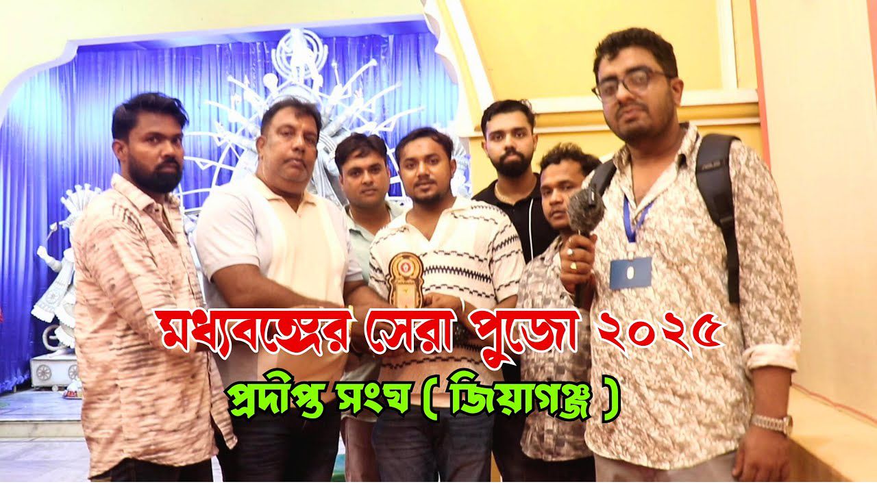 Spread the love ক্লাসমেট ভেঞ্চারস আয়োজিত মধ্যবঙ্গের সেরা পুজো ২০২৫ সহযোগিতায় ক্রিয়েটিভ জোন মোশন পিকচার, জীবিটোগ্রাফি, চরিত্রায়ন অনির্বেদ, মৌসুমী শপ, বিবিএমএস ফ্যামিলি এবং সিনেমা ও সাহিত্য ম্যাগাজিন। তারা পুজো পরিক্রমায় পৌঁছে গিয়েছিলেন মধ্যবঙ্গের মুর্শিদাবাদ জেলার জিয়াগঞ্জ শহরের দেবীপুর এলাকায় প্রদীপ্ত সংঘের দুর্গাপুজোতে। তাদের পুজো এবার ৫৪ তম বর্ষে পদার্পণ করল। এবারের তাদের থিম হয়েছিল পল্লীগ্রাম। অর্থাৎ গ্রাম বাংলার জিনিস দিয়ে তৈরি পুজোর মন্ডপ এবং প্রতিমা। বিশেষ করে মুর্শিদাবাদ জেলার বিখ্যাত পাট এই মন্ডপ এবং প্রতিমার কারুকার্য করা হয়েছিল।এবং উক্ত পুজো কমিটির সদস্যরা জানিয়েছেন তারা এই থিমটির ভাবনা এনেছেন গ্রাম বাংলার ঐতিহ্যকে টিকিয়ে রাখার বার্তা দিতে। তারা ক্লাসমেট ভেঞ্চারস এর পক্ষ থেকে মধ্যবঙ্গের সেরা পুজো ২০২৫ এর তরফ থেকে স্মারক সম্মান পেয়ে আনন্দিত। ক্লাসমেট ভেঞ্চারস এর তরফ থেকে উপস্থিত ছিলেন বিশাল বিশ্বাস , সৌরভ আম্বালি এবং সুবীর । Post navigation বিভাজন থেকে সংযোজনের বার্তায় খাগড়া মিলন সংঘ পেল মধ্য বঙ্গের সেরা পুজো সম্মান রাজস্থানের হাওয়া মহলের ছোঁয়ায় বাবুলবোনা দুর্গোৎসব, হাতে উঠল মধ্যবঙ্গের সেরা পুজোর শিরোপা