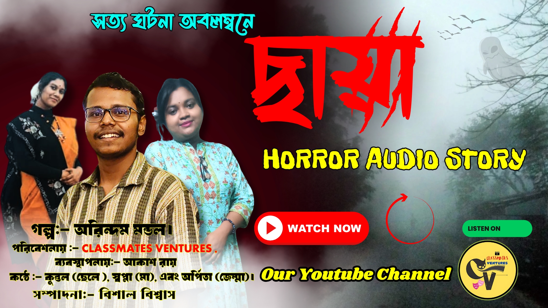 Spread the love ক্লাসমেট ভেঞ্চারস তাদের অফিসিয়াল ইউটিউব চ্যানেল এ রিলিজ করে ফেলেছে তাদের নতুন সত্য ঘটনা অবলম্বনে হরর অডিও স্টোরি “ছায়া” অডিও স্টোরিতে কন্ঠ দিয়েছেন কুন্তল বিশ্বাস, অর্পিতা দাস, স্বপ্না দেবনাথ, এবং ঘটনাটি লিখেছেন নবাগত লেখক অরিন্দম মন্ডল। তাছাড়া ব্যবস্থাপনায় ছিলেন আকাশ রায় আর সম্পাদনায় ছিলেন সংস্থার কর্ণধার বিশাল বিশ্বাস।বিশাল বিশ্বাস জানিয়েছেন আগামীতে বেশ কয়েকটি অডিও স্টোরি আসবে। সেগুলি কাল্পনিক অথবা সত্য ঘটনা অবলম্বনে।খুব তাড়াতাড়ি তাদের লাবণ্য সিগারেট শর্ট ফিল্ম টি রিলিজ হবে। নতুন শর্ট ফিল্মের শুটিংয়ের প্রস্তুতি শুরু হয়ে গেছে। বলাই বাহুল্য ২০২৫ এ ক্লাসমেট ভেঞ্চারসের সকল দর্শকরা বেশ কিছু নতুন শর্ট ফিল্ম ও অডিও স্টোরি দেখতে পাবে। Post navigation অভিনয়-এর সুযোগ, অডিশন হলো ‘ফ্রেন্ডস টিভি’ এবং ‘ওএসএফ’-এর যৌথ উদ্যোগে। OSF থেকে শিগ্রই আসতে চলেছে ‘পাঁচ দিনের সাহিত্য’, তার শুভ মহরত হলো আজ।