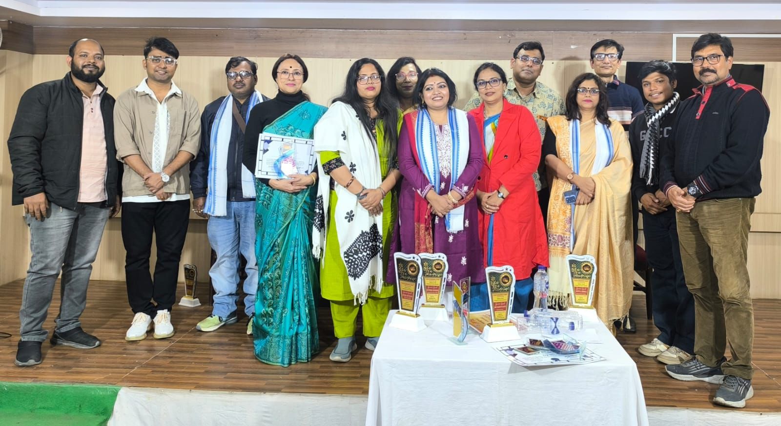 Spread the love নির্মাল্য বিশ্বাস পরিচালিত দুটি স্বল্পদৈর্ঘ্যের চলচ্চিত্র ‘কিছু বলব বলে’ এবং ‘সতীশ’ প্রদর্শিত হল রায়া দেবনাথ অডিটোরিয়ামে। অনুষ্ঠানে বিশিষ্ট অতিথিদের মধ্যে উপস্থিত ছিলেন শ্রী সদ্যোজাত, অরুণিমা চ্যাটার্জী, অতনু নন্দী, মৌতৃষা চৌধুরী এবং সুপ্তা আঢ্য। রেওয়া ফিল্ম প্রোডাকশন হাউসের পক্ষ থেকে তাঁদের সম্মানিত করেন মানস ঘোষ ও কৌশিক মিত্র। উদ্বোধনী সঙ্গীত পরিবেশন করেন মণিদীপা চক্রবর্তী। ‘সতীশ’ এবং ‘কিছু বলব বলে’ ফিল্ম দুটোর কলাকুশলীদের সম্মানিত করা হল। ‘কিছু বলব বলে’ ফিল্মের কাহিনীকার ও অভিনেত্রী মৌসুমী ঘোষ দাস সহ ওই ফিল্মের অন্যান্য টিম মেম্বারদের মধ্যে উপস্থিত ছিলেন শুভজিৎ দাস, করবী চট্টোপাধ্যায়, অরুণাংশু চট্টোপাধ্যায়, মোনালিসা চক্রবর্তী, সৈকত মাজি ও সুবীর মন্ডল। বিভূতি ভূষণ বন্দ্যোপাধ্যায়ের গল্প নিয়ে নির্মিত ‘সতীশ’ ফিল্মটির চিত্রনাট্যকার এবং অভিনেতা শ্রীকান্ত ভট্টাচার্য সহ উপস্থিত ছিলেন অভিনেতা পার্থ বাগচী ও হারাধন দুয়ারী। রেওয়া ফিল্ম প্রোডাকশন হাউস এবং টেক টাচ এন্টারটেইনমেন্টের উদ্যোগে পুজোর ব্যানার শ্যুটে যাঁরা অংশগ্রহণ করেছিলেন তাঁদের সম্মানিত করা হল। সম্মাননা প্রাপকরা হলেন অরুণিমা চ্যাটার্জী, অভিজিৎ বারুই, নন্দিতা বারুই, সৌম্যদীপ্তা দে, দেবযানী সিংহ, অদৃজা সিংহ, মনিকা ঘোষ, আরুশ সরকার, তিস্তা গোস্বামী। নির্মাল্য বিশ্বাস ও অরুণিমা চ্যাটার্জী পরিবেশন করেন একটা শ্রুতি নাটক। উপস্থিত দর্শকগণ সমগ্র অনুষ্ঠানটি দারুণ উপভোগ করেন। Post navigation কলকাতা আন্তর্জাতিক বইমেলা ২০২৬-এর শুভ উদ্বোধন, উপস্থিত মুখ্যমন্ত্রী মমতা বন্দ্যোপাধ্যায় প্রতিবছরের মতো এ বছরও ২১শে জানুয়ারি কলকাতার সুজাতা সদনে অনুষ্ঠিত হল OSF পরিবার সম্মান ২০২৬।