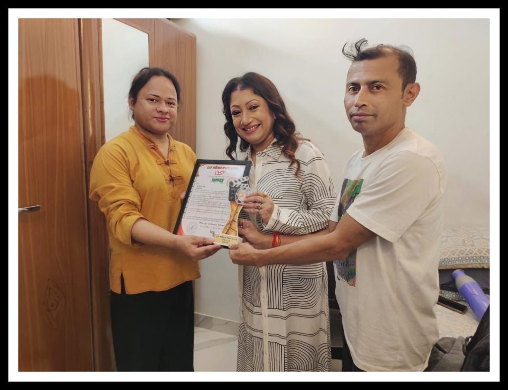 পরবর্তীতে শুটিং স্পটেই গিয়ে অভিনেত্রীর হাতে সম্মাননা তুলে দেন সংস্থার সিইও শ্রী দাস এবং পরিচালক প্রলয় সেনগুপ্ত। আন্তরিক ও অনাড়ম্বর পরিবেশে এই সম্মান প্রদান অনুষ্ঠানের সাক্ষী থাকেন শুটিং ইউনিটের সদস্যরাও।