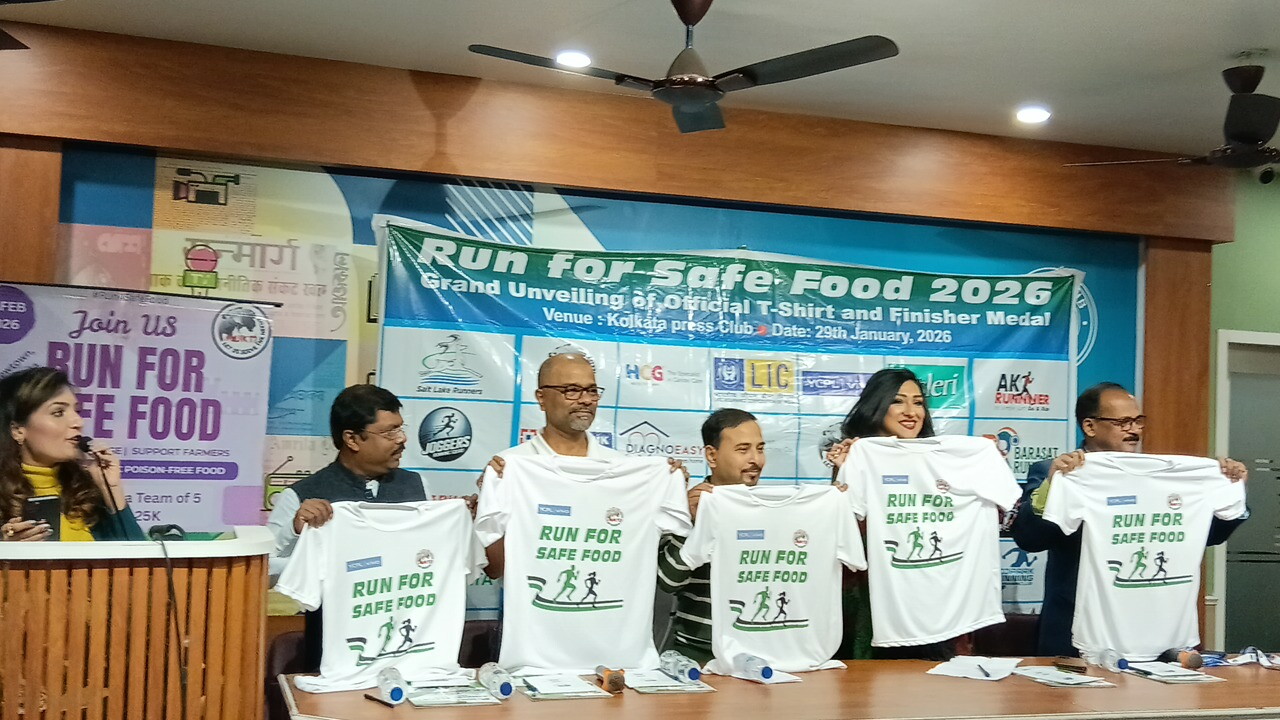 Spread the love কলকাতা, ২৯ জানুয়ারি ২০২৬: মুখতি (Mukti) – একটি সামাজিক-অর্থনৈতিক উন্নয়নমূলক সংগঠন – আয়োজিত Run for Safe Food 2026 একটি জনসচেতনতা দৌড়, যার লক্ষ্য নিরাপদ, জৈব ও পুষ্টিকর খাদ্যকে উৎসাহিত করা। কলকাতা প্রেস ক্লাবে বৃহস্পতিবার, ২৯ জানুয়ারি ২০২৬ তারিখে এই উদ্যোগের অফিসিয়াল অংশ হিসেবে অংশগ্রহণকারীদের টি-শার্ট ও ফিনিশার মেডেল উন্মোচনের মাধ্যমে একটি গুরুত্বপূর্ণ মাইলস্টোন চিহ্নিত করা হয়। এই অনুষ্ঠানে উপস্থিত ছিলেন বিশিষ্ট চলচ্চিত্র অভিনেত্রী মিস ঋতুপর্ণা সেনগুপ্ত, Run for Safe Food 2026-এর ব্র্যান্ড অ্যাম্বাসাডর। এছাড়াও উপস্থিত ছিলেন মিস্টার ভাস্কর হালদার, মুক্তির প্রতিষ্ঠাতা ও সভাপতি; মিস্টার সত্যজিৎ রায়, মুক্তির সেক্রেটারি; এবং মুক্তির বোর্ড সদস্যরা। অনুষ্ঠানে আরও উপস্থিত ছিলেন কৃষক ক্লাবের প্রতিনিধ Post navigation প্লেব্যাক গানের ইতি টানলেন অরিজিৎ সিং হঠাৎ সোশ্যাল মিডিয়ায় ঘোষণায় চমকে গেল সংগীত মহল আদালতের রায়ে আর্থিক দুর্নীতি ও অন্যান্য যাবতীয় অভিযোগ থেকে অরদীপ চ্যাটার্জির সম্মানজনক ও নিঃশর্ত মুক্তি