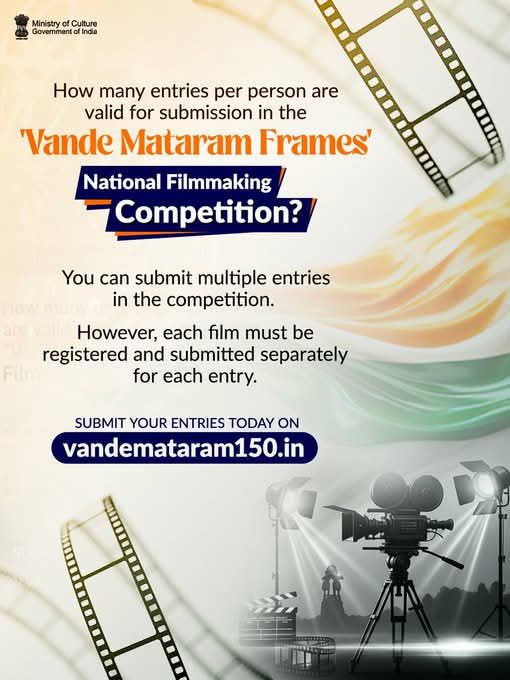 Spread the love কেন্দ্রীয় সংস্কৃতি মন্ত্রক ‘বন্দে মাতরম ফ্রেমস জাতীয় চলচ্চিত্র নির্মাণ প্রতিযোগিতা’-র জন্য সারা দেশ থেকে চলচ্চিত্র নির্মাতা এবং সৃজনশীল অনুরাগীদের অংশগ্রহণের আহ্বান জানিয়েছে। ‘বন্দে মাতরম’-এর দেশপ্রেম ও চেতনা উদযাপনের লক্ষ্যে আয়োজিত এই প্রতিযোগিতা নতুন ও উদীয়মান প্রতিভাদের জন্য এক অনন্য সুযোগ তৈরি করছে। এই উদ্যোগের মাধ্যমে অংশগ্রহণকারীরা তাঁদের সৃজনশীলতা, উদ্ভাবনী চিন্তাভাবনা এবং চলচ্চিত্র নির্মাণের দক্ষতা তুলে ধরতে পারবেন। শর্ট ফিল্ম, ডকুমেন্টারি বা অন্যান্য সৃজনশীল ফরম্যাটে নির্মিত কাজ জমা দেওয়ার সুযোগ থাকবে বলে জানা গিয়েছে। মন্ত্রকের পক্ষ থেকে জানানো হয়েছে, নির্বাচিত সেরা কাজগুলিকে পুরস্কৃত করা হবে এবং দেশজুড়ে প্রদর্শনের সুযোগও মিলতে পারে। আগ্রহী অংশগ্রহণকারীরা নির্দিষ্ট ওয়েবসাইট vandemataram150.in-এ গিয়ে প্রতিযোগিতা সংক্রান্ত বিস্তারিত তথ্য ও আবেদন প্রক্রিয়া জানতে পারবেন। Post navigation রাহুলের মৃত্যুর পর নিরাপত্তা ইস্যুতে তোলপাড় টলিপাড়া, মঙ্গলবার থেকে অনির্দিষ্টকালের জন্য বন্ধ সব শুটিং